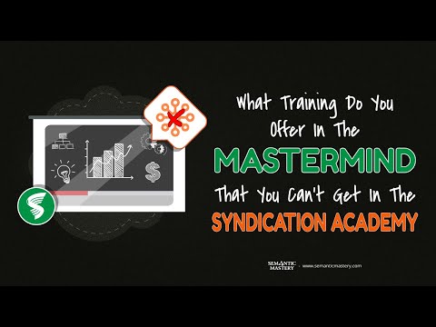 In the 299th episode of Semantic Mastery’s weekly Hump Day Hangouts, one participant asked what training does the team offer in the Mastermind that you can’t get in the Syndication Academy.